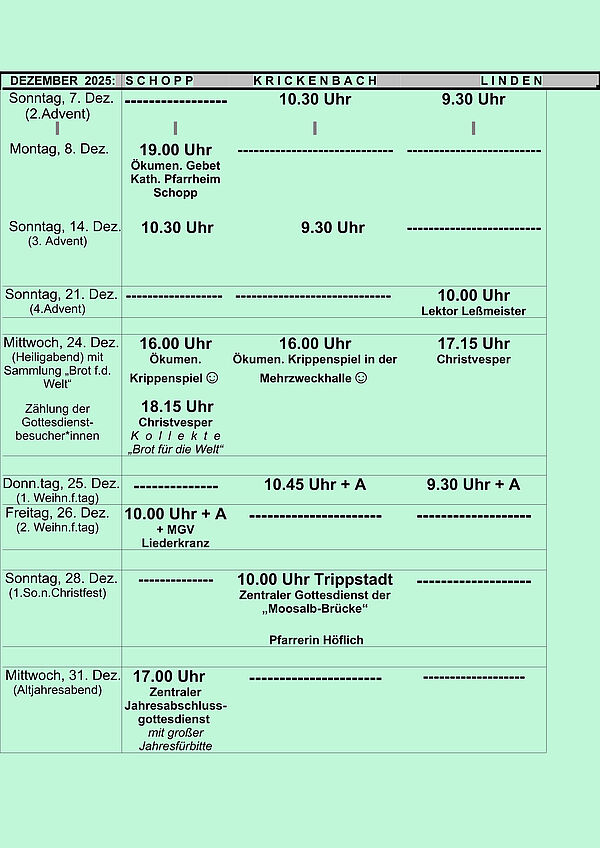 Pfarrerinnen und Pfarrer zur Dienstleistung