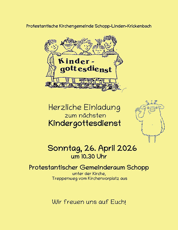 Im Jahr 2025 haben wir den Schopper Kindergottesdienst (KiGoDi) wieder aufleben lassen. Mit neuen Ideen und Motivation trafen wir uns im Sommer, um die ersten Termine zu planen. Ende August starteten wir mit dem Eröffnungs-KiGoDi im Rahmen des Sonntagsgottesdienstes mit Herrn Pfarrer Hust in der Prot. Kirche Schopp. Er stellte in einer Geschichte über Gemeinschaft das „kleine WIR“ vor, welches uns als Maskottchen zukünftig im KiGoDi begleiten wird. Der erste KiGoDi fand im September im Gemeinderaum der Prot. Kirche statt. Wir hörten, dass das „kleine WIR“ glücklich ist, wenn wir gemeinschaftlich und freundlich miteinander umgehen. Streit und Ungerechtigkeiten mag das „Wir“ hingegen gar nicht. Der KiGoDi im Oktober behandelte das Thema Dankbarkeit und Erntedank. In einer gemütlichen Runde tranken wir Tee und dankten Gott für seine Gaben. Zudem gestalteten wir bunte Herbstbäume mit Fingerfarben. Im November leuchteten viele Lichter im KiGoDi und wir erfuhren, dass Gott Licht ins Dunkel bringt. Passend dazu bastelten wir leuchtende Teelichtgläser. Im Dezember trafen wir uns zur Sternstunde und hörten, was der kleine Stern auf dem Weg zur Krippe erlebte. Nach gemeinsamem Basteln von glitzernden Sternen feierten wir die Eröffnung des Adventsfensters unserer Kirche. Wir erfreuen uns an der wachsenden Anzahl der Kinder und bedanken uns bei allen für die großartigen gemeinschaftlichen Treffen. Außerdem freuen wir uns sehr, Euch alle gesund und munter am 11.01.2026 um 10:30 Uhr bei unserem ersten Kindergottesdienst im neuen Jahr zu begrüßen. Euer KiGoDi Team: Annika, Bella, Brigitte, Emilie, Frieda, Hannah, Monika, Natalie, Steffi und das kleine WIR