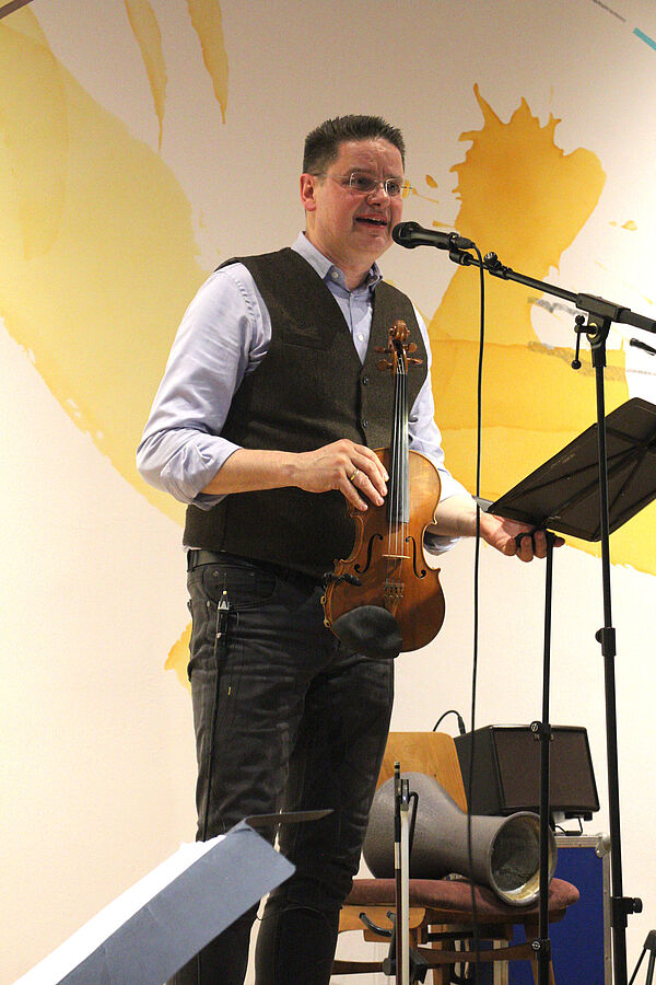 „Naschuwa“ bedeutet umkehren, sich hinwenden, sich interessieren. Diese Offenheit, dieses Interesse an der jüdischen Musik und der jüdischen Kultur zeigte sich in jedem einzelnen Beitrag beim Konzert von „Naschuwa“ am 07.11.2025 in der Prot. Kirche Krickenbach, dem krönenden Abschluss des Krickenbacher Jubiläumskalenders „60 Jahre Protestantische Kirche Krickenbach“. Es war ein absoluter musikalischer Höhepunkt! Das Repertoire der drei Musiker um den ehemaligen Rodalbener Gemeindepfarrer Matthias Helms umfasste jiddische und hebräische Lieder sowie mitreißende Klezmer-Musik. Die Musikgruppe führte die begeisterten Besucherinnen und Besucher in der gut gefüllten Krickenbacher Kirche kurzweilig und lehrreich mit viel herzerwärmendem Humor durch das Programm. Matthias Helms lehrte die Anwesenden sogar ein wenig Jiddisch, das mit Begeisterung aufgenommen und nachgesprochen wurde. Pfarrer Wolfgang Hust begrüßte die Gäste und bedankte sich für die Vorbereitung und Begleitung des Konzerts durch die vielen ehrenamtlichen Helfer*innen sowie bei den 14 Sponsoren – ortsansässige und regionale Unternehmen – für die großartige finanzielle Unterstützung. Ihre Firmen-Logos waren auf den Eintrittskarten und Konzertplakaten abgedruckt.