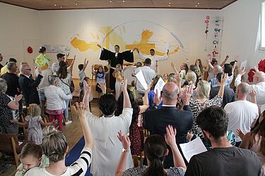 Am 15. Juni ‘25 feierte die Protestantische Kirchengemeinde Schopp-Linden-Krickenbach gemeinsam mit der Katholischen Kirchengemeinde einen ökumenischen Familientag in Krickenbach. Begonnen hat das Fest mit einem ökumenischen Familiengottesdienst in der Protestantischen Kirche, liturgisch geleitet von Pfarrer Hust und Kaplan Bernard. Die Kinder und das Vorbereitungsteam erzählten und spielten die Geschichte von den Blumen, denen die Augen für den Blick der Liebe geöffnet wurden. Wir danken allen, die den ökumenischen Familiengottesdienst und -tag mit sehr viel Liebe und Herzblut vorbereitet und mitgestaltet haben. Auch über die vielen Kuchenspenden haben wir uns sehr gefreut. Sehr schön war es, dass so viele Besucher*innen erschienen sind – trotz angekündigter schlechter Witterung.