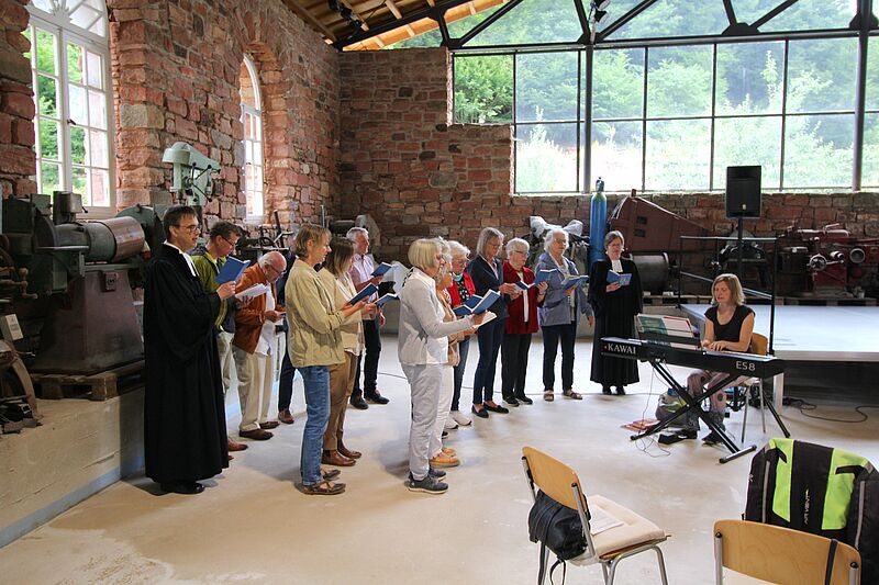 Am Sonntag, 06.07.2025, feierten die beiden Kooperations-Kirchengemeinden Trippstadt-Stelzenberg-Mölschbach und Schopp-Linden-Krickenbach am Unterhammer im Karlstal ihren 2. Kooperationsgottesdienst. Der Gottesdienst war sehr gut besucht und wurde musikalisch vom Evangelischen Kirchenchor Trippstadt mitgestaltet. Im Anschluss an den Gottesdienst traf man sich noch bei Kaffee und Kuchen im Café Unterhammer. Wir danken dem Team Unterhammer für die Bereitstellung der Alten Schmiede und allen, die den Gottesdienst vorbereitet und mitgestaltet haben.