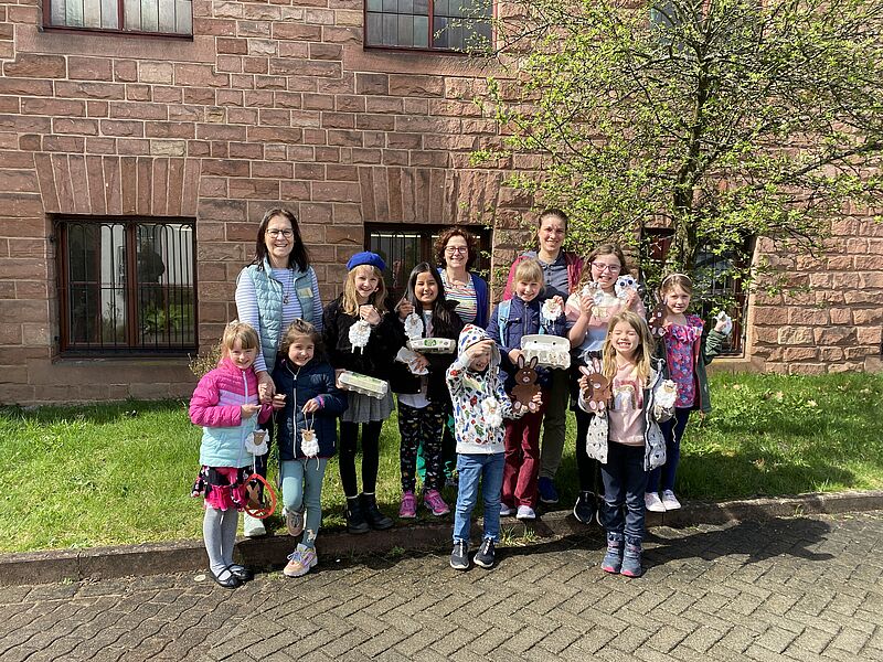 Am 23.03.24 trafen sich elf Kinder und drei Betreuerinnen aus verschiedenen Gemeinden im Kirchensälchen Stelzenberg zum Osterbasteln. Nach einer kleinen Kennenlernrunde ging es mit guter Laune frisch ans Werk. Es entstanden bunte frühlingshafte Fensterbilder mit Osterhasen, Hühnern und Vogelnestern, flauschige Hänge-Schäfchen mit Kulleraugen und aus bemalten Papprollen goldige Hasen. In die mitgebrachten Eierschalen wurden Kressesamen gestreut, die bis zum Osterfrühstück zu leckerem Grün heranwachsen. Die Zeit verging im Flug und jedes Kind hielt am Ende stolz seine hübschen Osterbasteleien in der Hand. Die gemeinsame Aktion der „Moosalb-Brücke“ hat allen großen Spaß gemacht und findet bestimmt eine Fortsetzung!