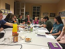 Dekan Schwarz zu Gast im Stadthaus Rockenhausen bei Jugendreferent Matthias Klein und den Mitarbeiterinnen und Mitarbeiter der Ev. Jugend. Er zeigt...