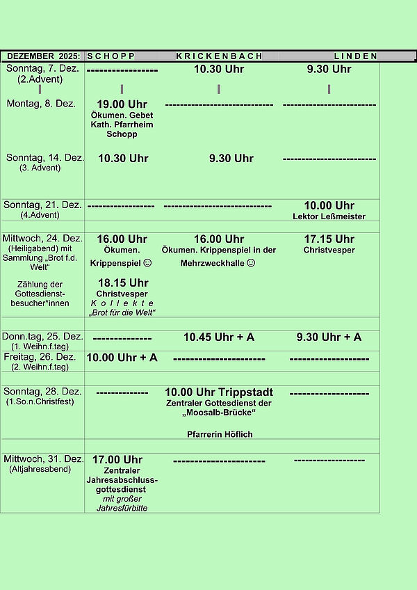 Pfarrerinnen und Pfarrer zur Dienstleistung