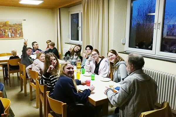Für alle Mitwirkenden des Krippenspiels zum ökumenischen Familiengottesdienst an Heiligabend 2025 in Schopp gab es am 30. Januar ein Nachtreffen im Protestantischen Gemeinderaum. In entspannter Atmosphäre schauten wir uns nach zwei Willkommensliedern das Video des Krippenspiels an. Im Anschluss gab es leckere selbstgebackene Pizza und Brownies zum Nachtisch. Herzlichen Dank an die Spender von Pizzazutaten, Brownies und Apfelsaftschorle sowie an die Pizzabäcker.